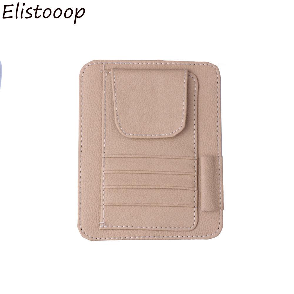Универсальный автомобильный солнцезащитный козырек, солнцезащитные очки, ручка, держатель для карточек, билетов, многофункциональный кожаный держатель для очков для автомобиля бежевый