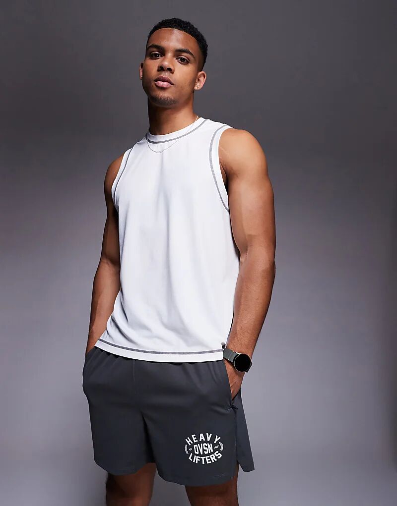 Майка из сетчатой ткани 4505 С заниженными проймами и контрастными швами белого цвета