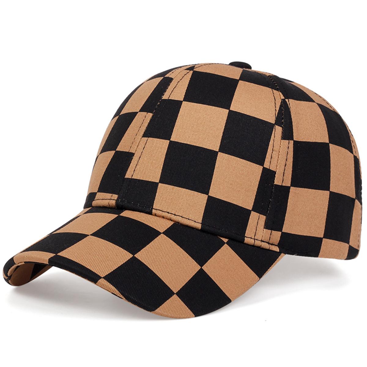Унисекс Большие Бейсболки с Черно-Белым Принтом в Клетку Весна и Осень Уличные Регулируемые Повседневные Шляпы Солнцезащитная Шляпа коричневый