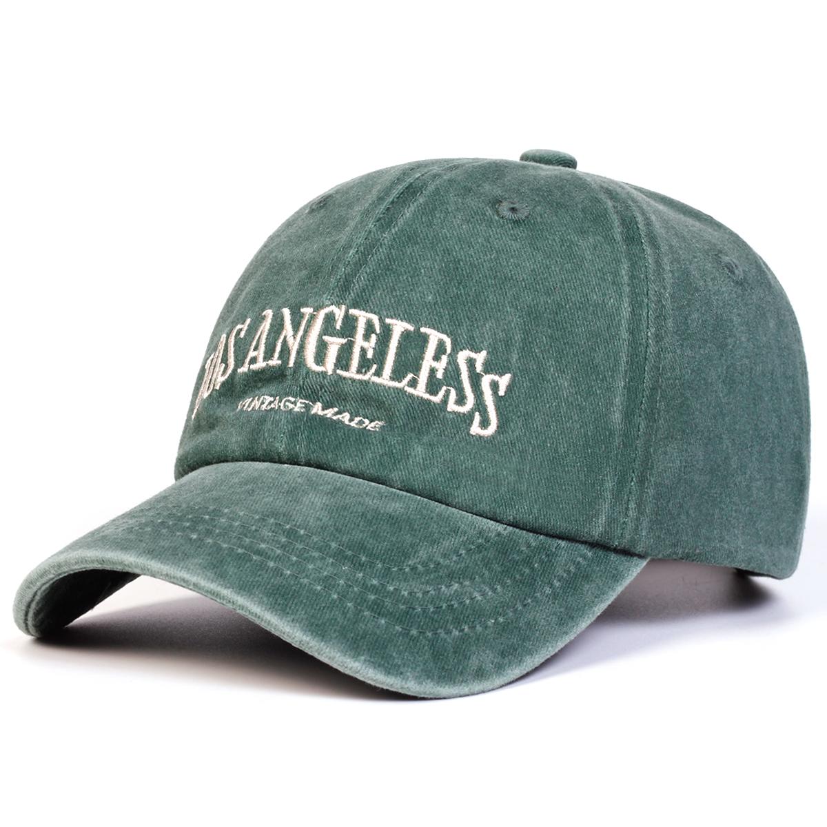 Унисекс ВЫШИВКА LOS ANGELESS Стирка Бейсболки Регулируемые Повседневные Шляпы Весна и Осень Уличная Солнцезащитная Шляпа зелёный