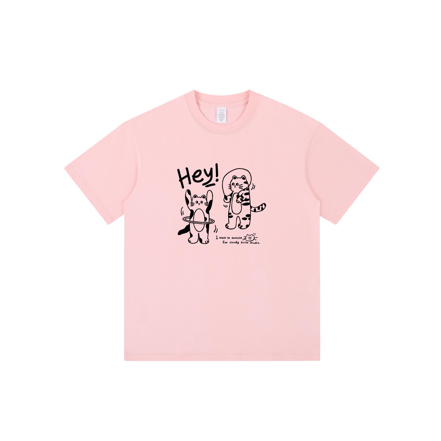 Унисекс Летний Тренд Хлопковая Футболка с Принтом Кота, Со Спущенным Плечом, Свободного Кроя Medium розовый