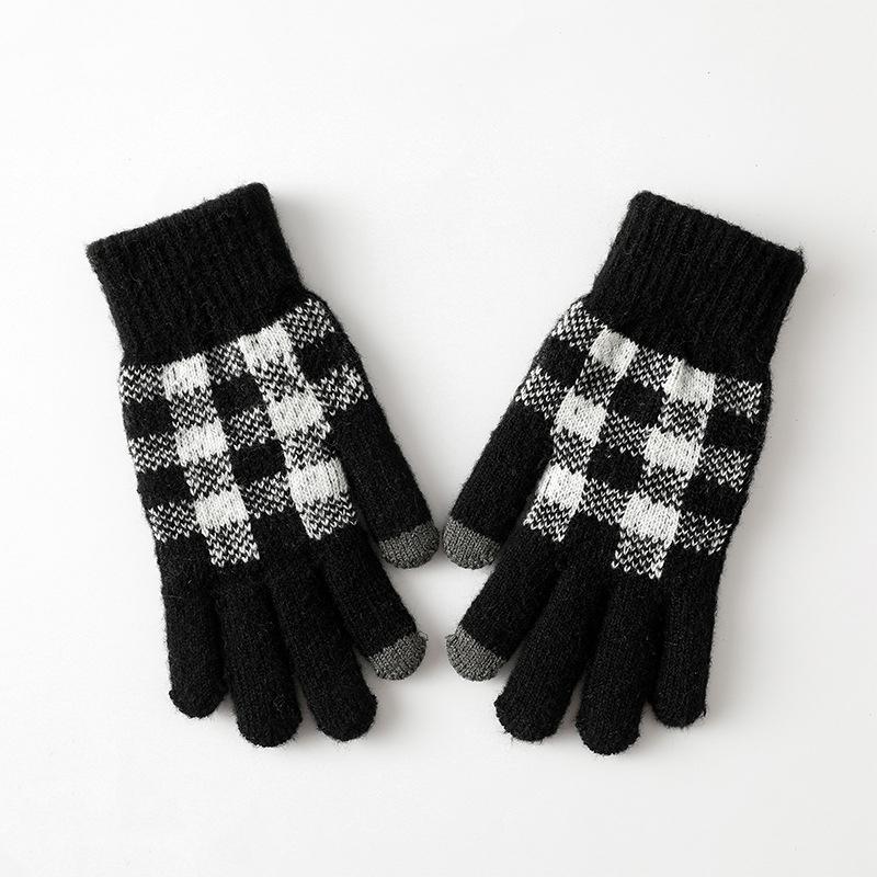 Унисекс модные клетчатые зимние сохраняющие тепло вязаные утолщенные однотонные сенсорные мягкие перчатки черный белый