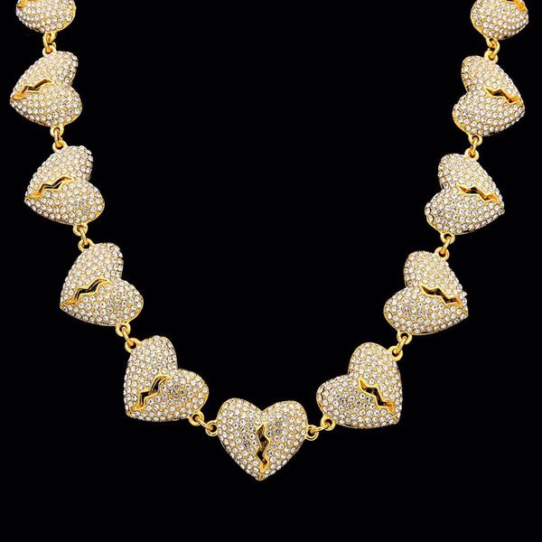 Унисекс хип-хоп со льдом шику сердце разбитый алмаз панк звено цепи роман ожерелье ювелирные изделия мужчины женщины