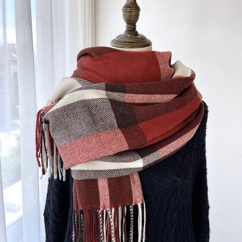 Унисекс цветной клетчатый шарф из искусственного кашемира, теплая шаль с кисточками, осенне-зимний утепленный шейный платок 70-180cm