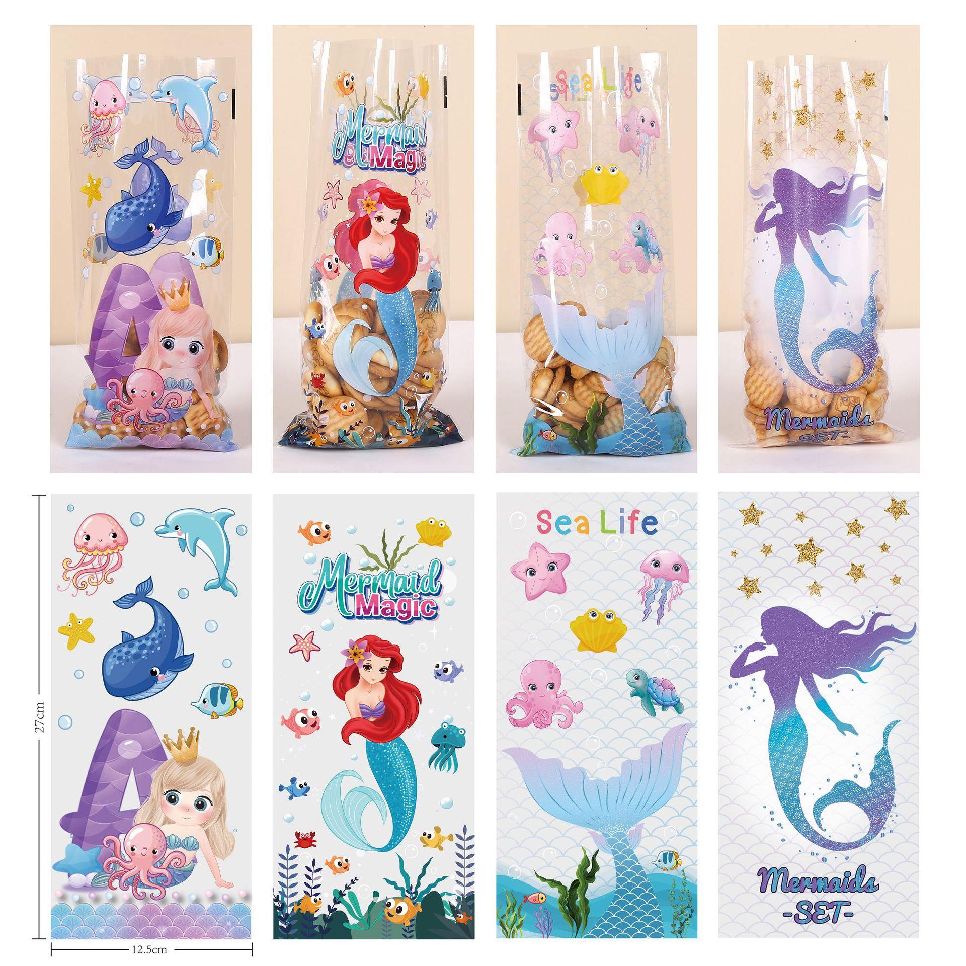 Упаковочный пакет для вечеринки по случаю дня рождения, мультяшный единорог, ребенок, животное, 50 шт., прозрачный, праздничные принадлежности, динозавр, пластик, русалка, конфеты, подарочный пакет, ювелирные изделия, аксессуары фиолетовый