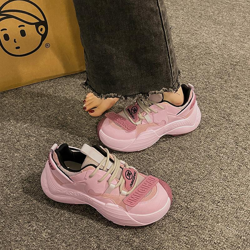 Уродливые милые туфли для папы с большой головой, женские, весна и осень, новые дышащие маленькие белые туфли с толстой подошвой, легкие, универсальные, повседневные, спортивные кроссовки 35 розовый