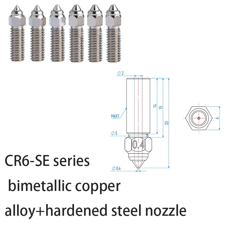 Усовершенствованное сопло из биметаллического медного сплава + закаленная сталь/латунь/закаленная сталь, совместимое с сериями Bambu Lab A1/A1 Mini/X1/P1