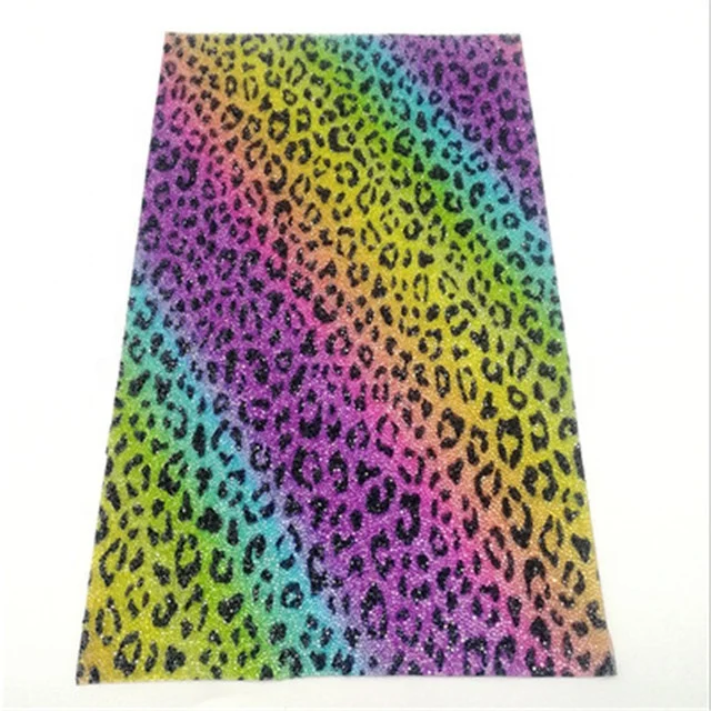 colorful Rainbow Leopard Print Glass Rhinestone Mesh Trimming Hot Fix Adhesive Crystal Sticker Sheet For Cell Phone, Many colors