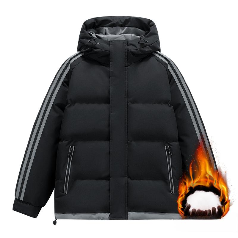 Утепленная мужская зимняя модная куртка с двумя полосами, утолщенная, теплая, с капюшоном, модная, универсальная, для пар 5XL чёрный