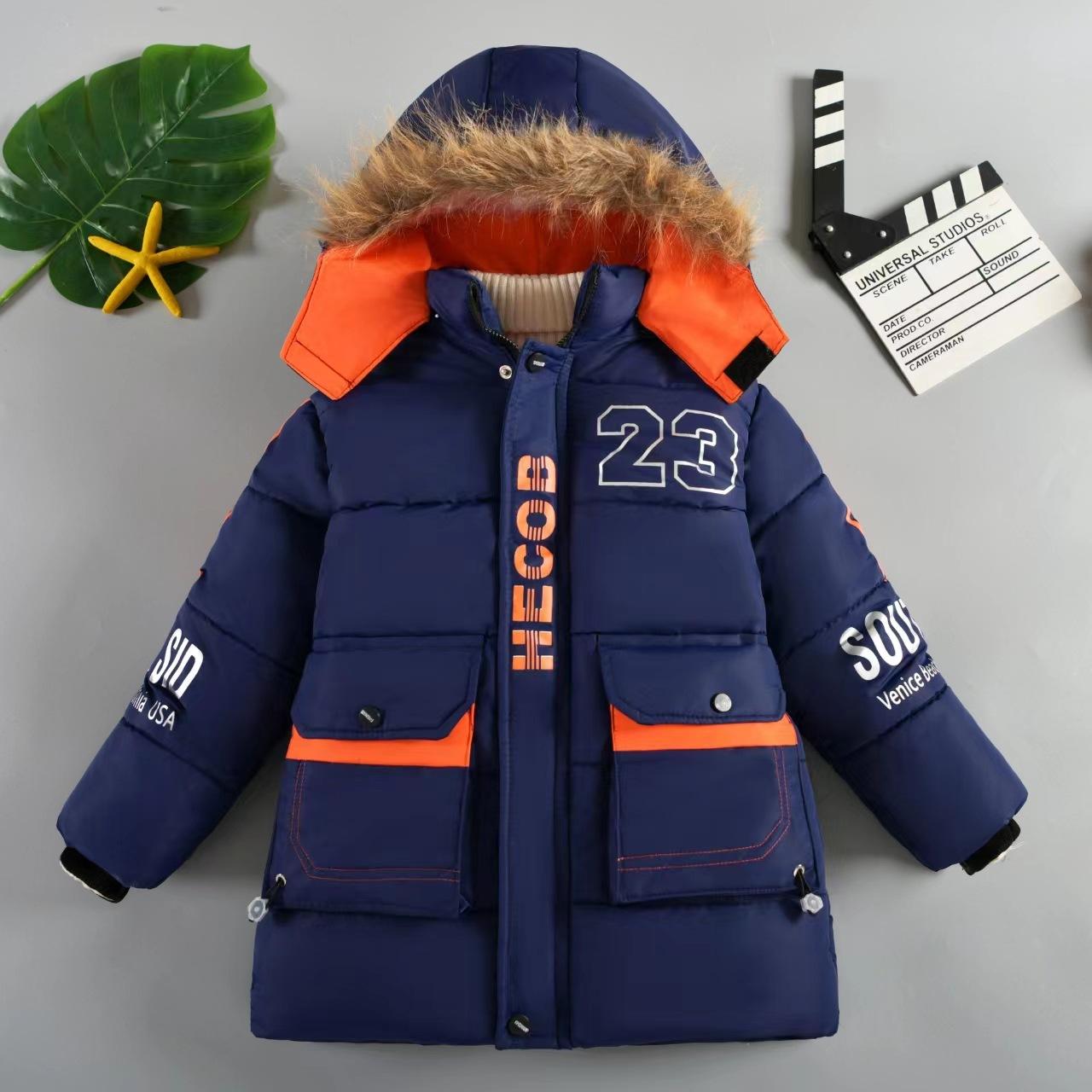 Утепленная стеганая короткая куртка для мальчиков на осень и зиму с капюшоном, теплая верхняя одежда 120
