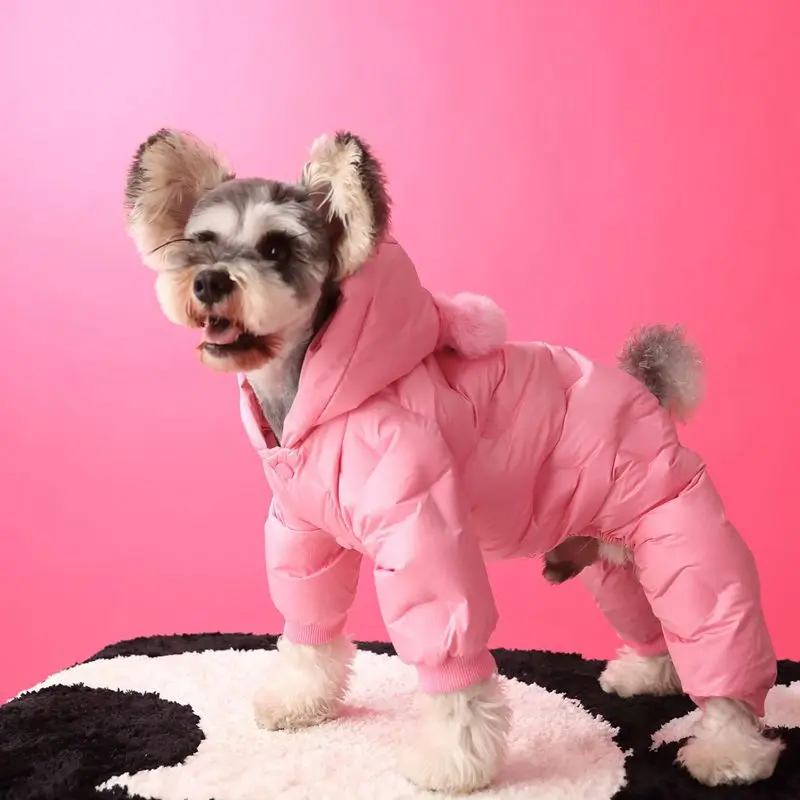 Утепленные пуховики для собак, зимнее теплоизоляционное пальто с четырьмя ногами для домашних кошек, наряд, пуховик шнауцера, милая куртка для собак, одежда для щенков