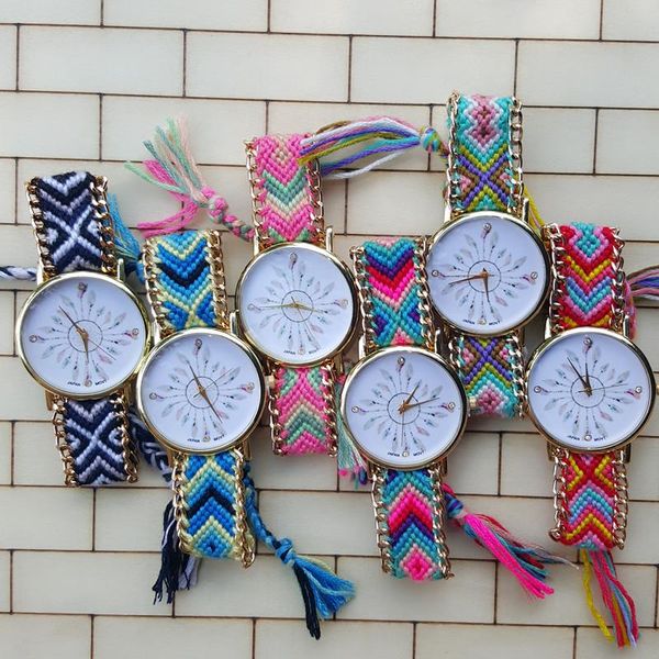 wristwatches 2021 exclusive feathers woven watch, creative design national dreamcatcher weaving girl watch friendship, Slivery;brown