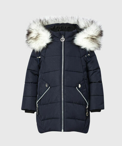 Утеплённая куртка для девочек - Тип ткани - полиэстеровая матовая ткань - Отделка ткани - водоотталкивающая и водоустойчивая пропитка - Подкладка - таффета - Утеплитель - искусственный пух - Длина до колена - Прямой силуэт - Капюшон не отстёгивается - Застёжка на молнии, ветрозащитная планка - Рукава втачные, низ рукавов на манжетах - Карманы на молнии Страна производства: Китай