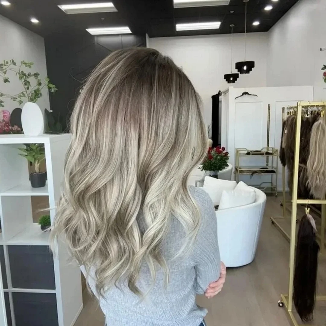 Темные корни Ombre Balayage Платиновый блондин парик 13x4 HD Прозрачный синтетический парик спереди Натуральный вид Свободный волнистый парик Подарки