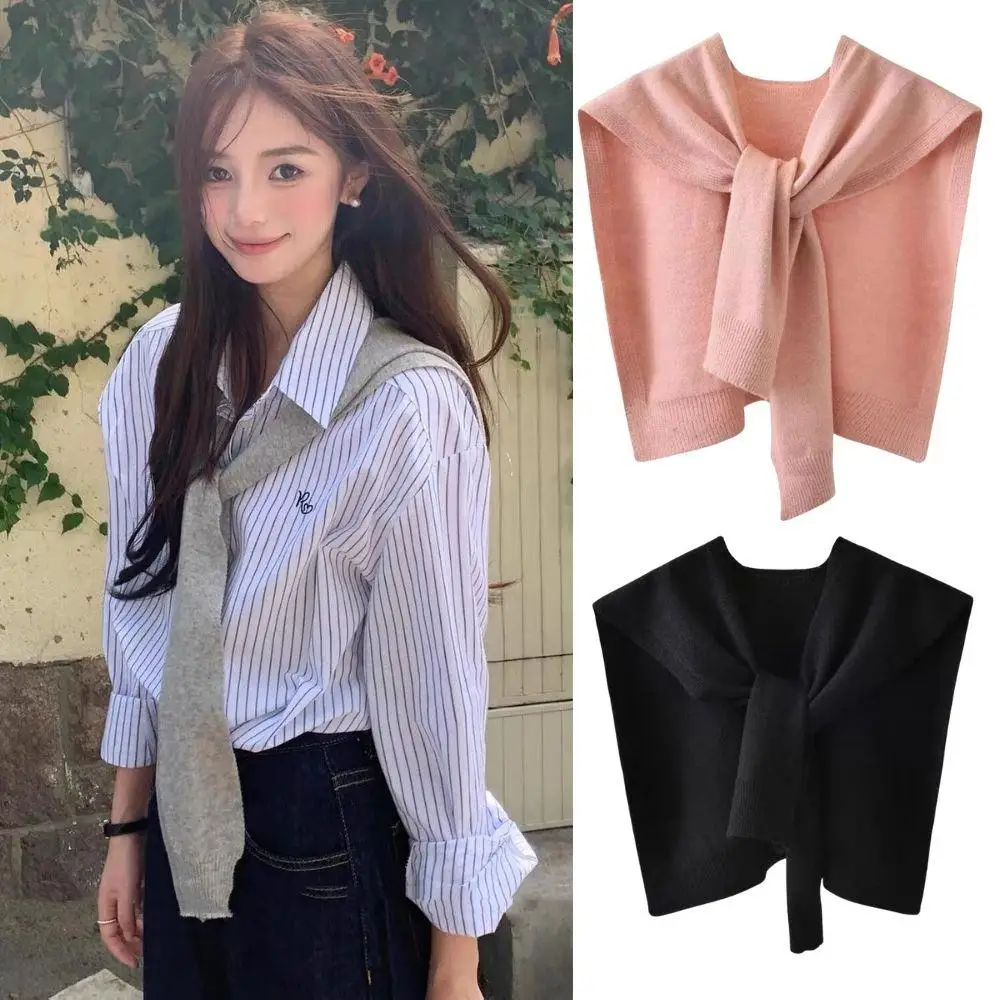 Высококачественная однотонная вязаная шаль для женщин, осенне-зимние простые шарфы в корейском стиле, мягкая теплая шаль с ремешками, модное пальто