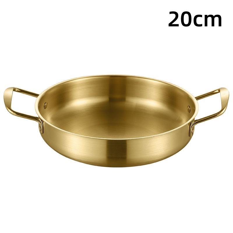 Утолщенная сковорода из нержавеющей стали 0,8 мм для морепродуктов и хот-пота, золотистая плоская неглубокая сковорода с двумя ручками, прочная многоцелевая кухонная тарелка 20cm