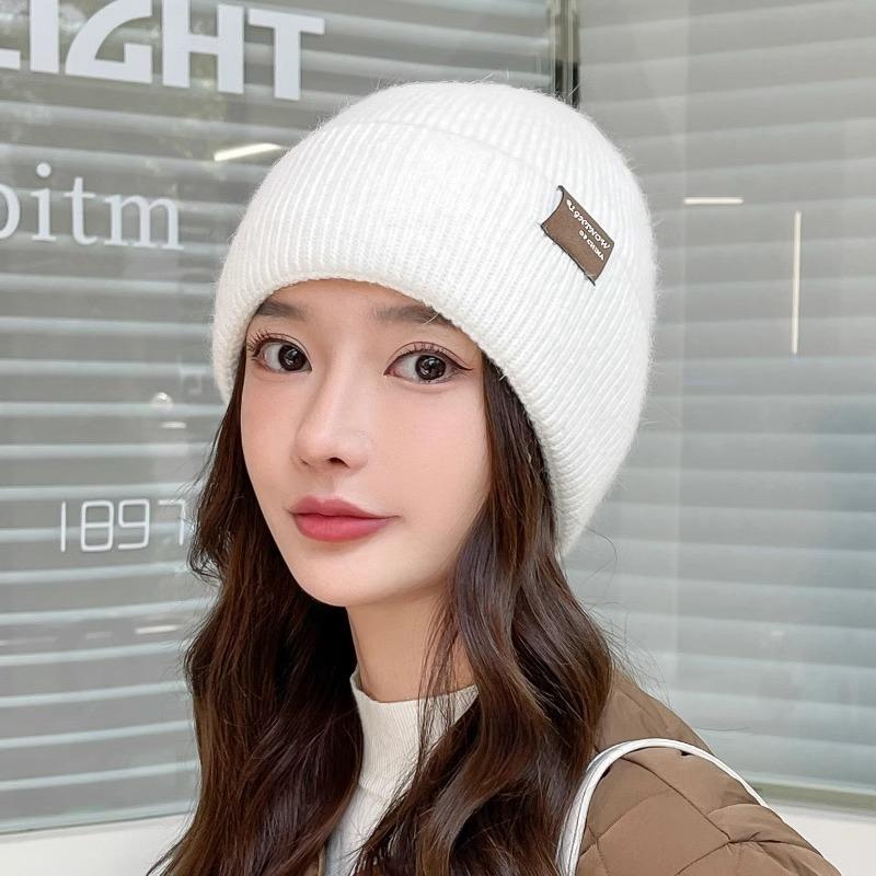 Утолщенная шапка из вязаной шерсти с кроличьим мехом, женская зимняя теплая флисовая шапка, холодо- и ветрозащитная, для периода после родов, большой окружности головы, с защитой ушей Elastic (55-63cm)