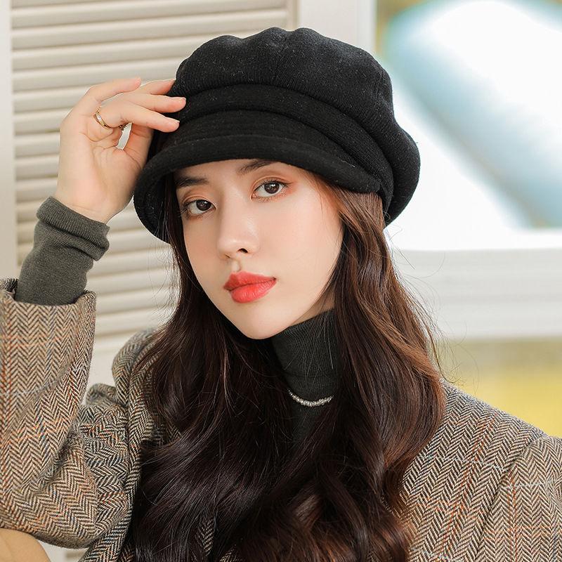Утолщенная шерстяная восьмиугольная шляпа, весенне-осенняя однотонная универсальная шляпа-берет в стиле ретро one size чёрный