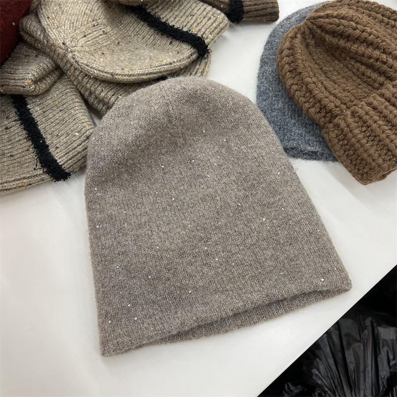 Утолщенная шерстяная двухслойная вязаная шапка с серебряными пайетками, детская зимняя теплая элегантная однотонная литературная шерстяная шапка-бини M(56-58cm)