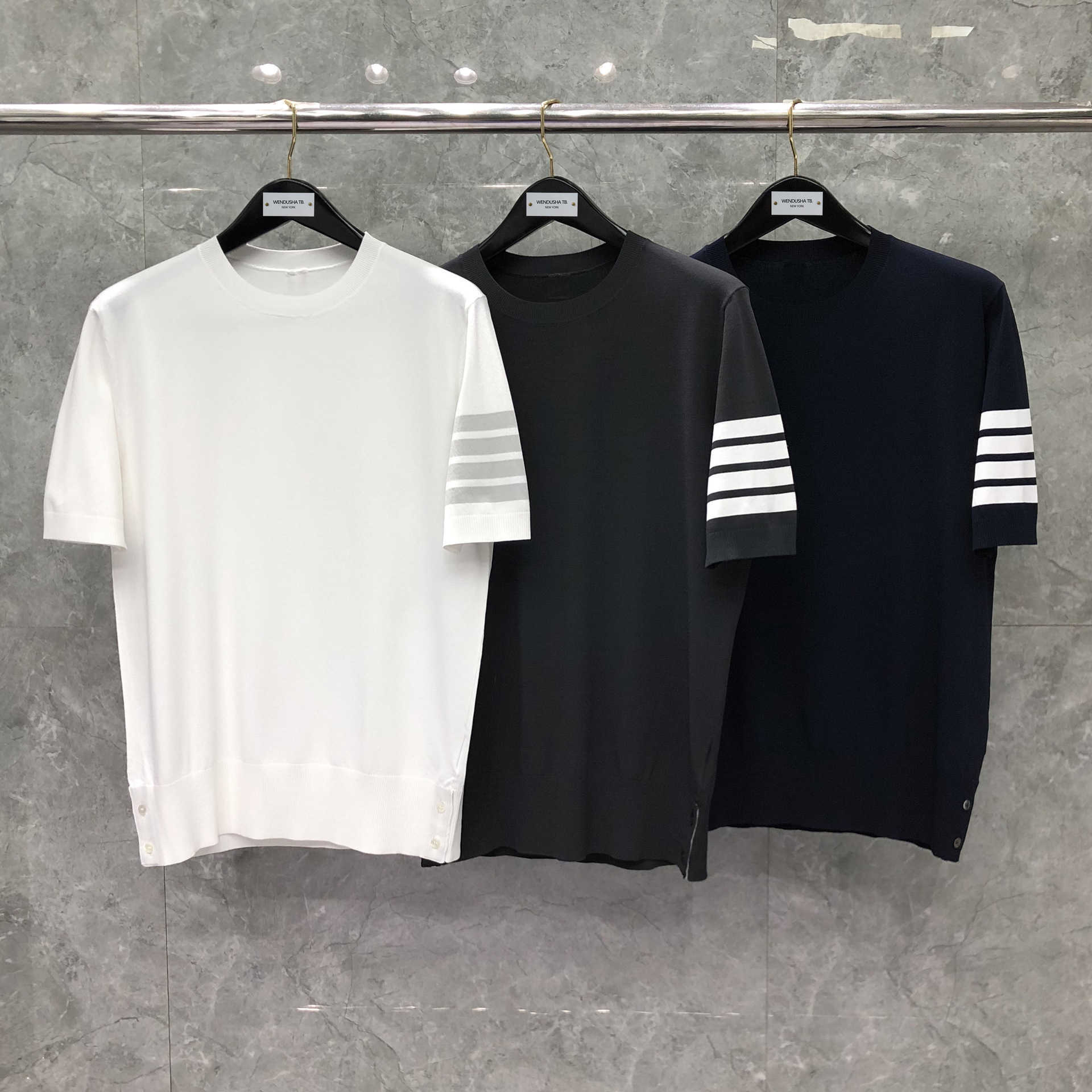 TIME BREATHE tb Short Sleeve Elite New Summer Unisex Round Neck Four Bar T-shirt Top, White