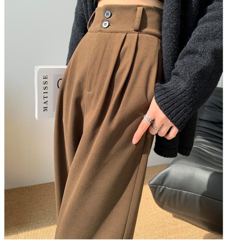 Утолщенные шерстяные брюки широкого кроя для женщин на осень и зиму. Коричневые брюки с высокой талией. Высококачественные свободные повседневные брюки с драпировкой. M