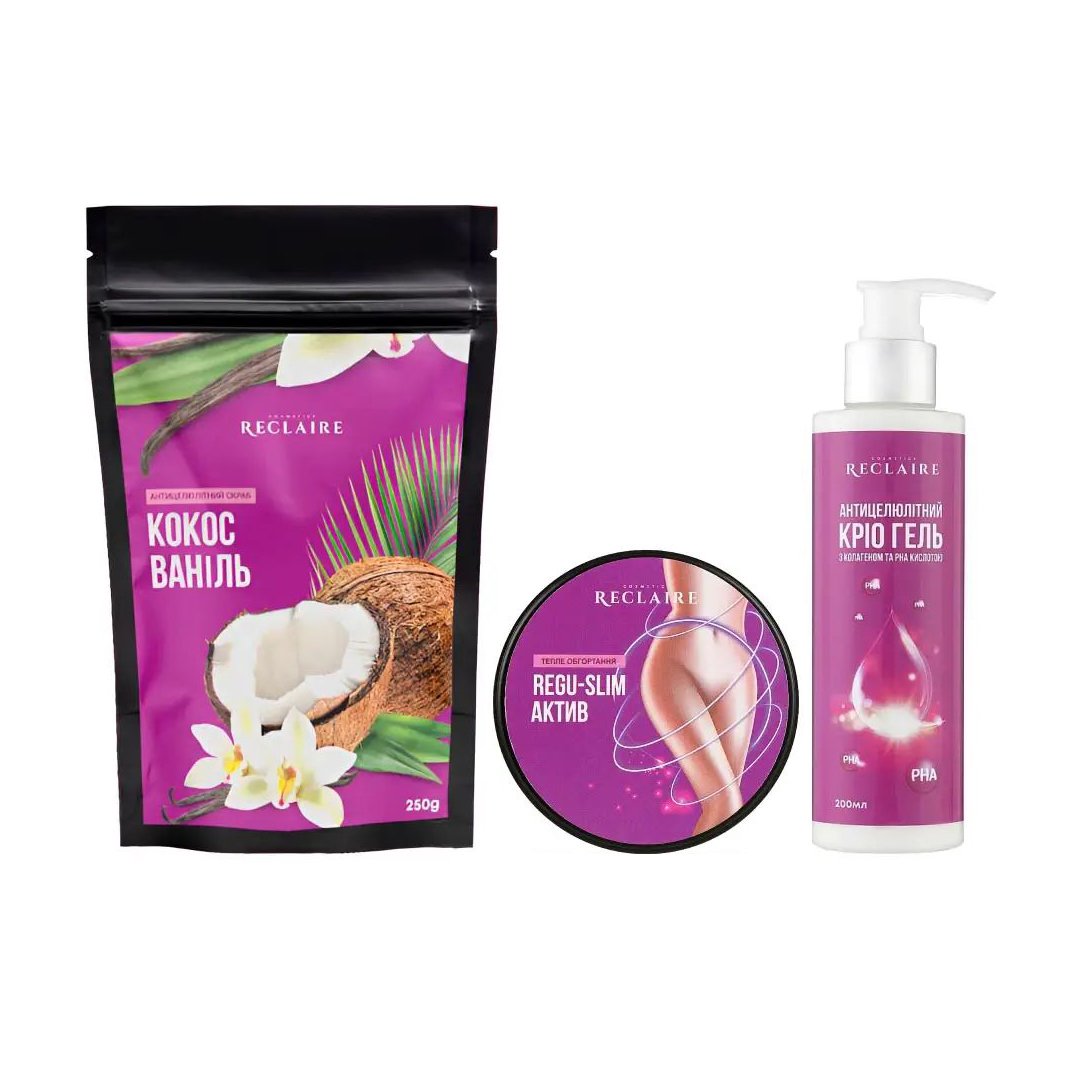 Уцінка! Набір для тіла Reclaire Антицелюлітний комплекс (скраб Кокос-ваніль, 250 г + тепле обгортання, 200 мл + кріо гель, 200 мл)