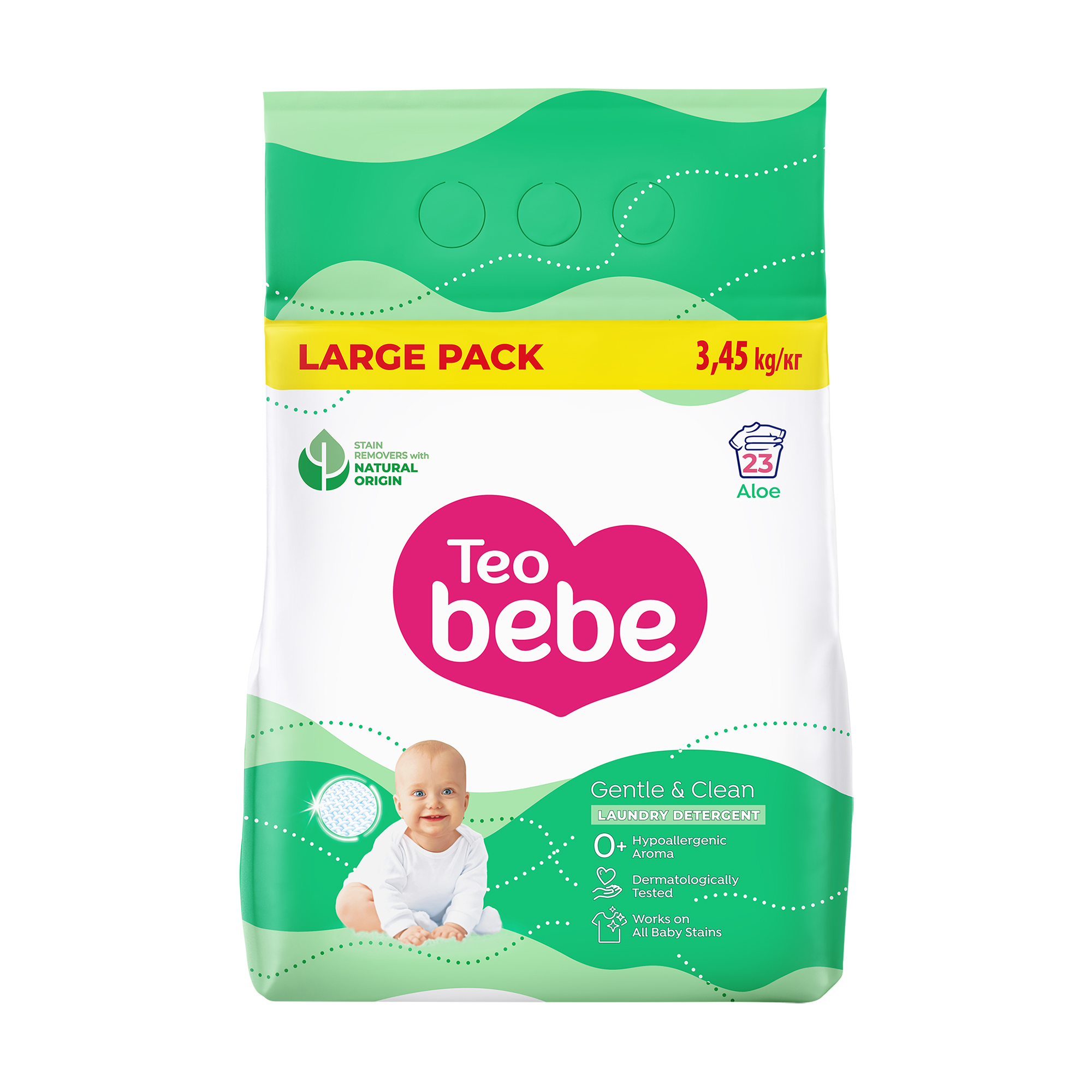Уцінка! Пральний порошок Teo Bebe Gentle & Clean Aloe для дитячих речей, 23 цикли прання, 3.45 кг