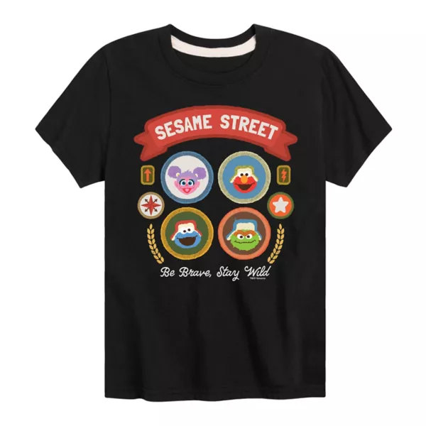 Футболка с принтом «Улица Сезам, будь храбрым, оставайся диким» для мальчиков 8-20 лет Licensed Character, черный