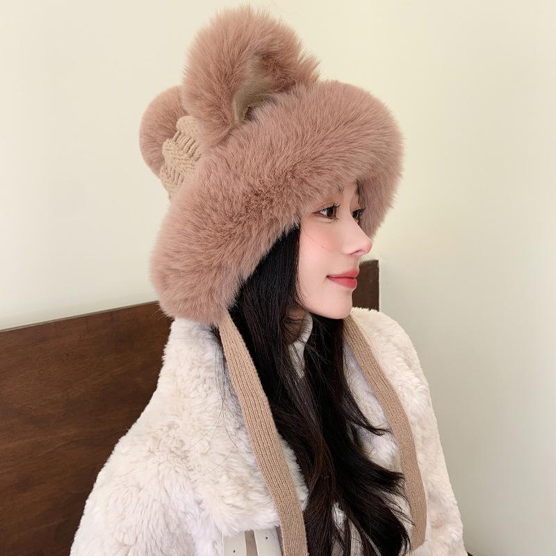Уютная плюшевая шапка с кошачьими ушками для женщин - теплая, эластичная акриловая зимняя шапка с ушами, модная и универсальная ONE SIZE