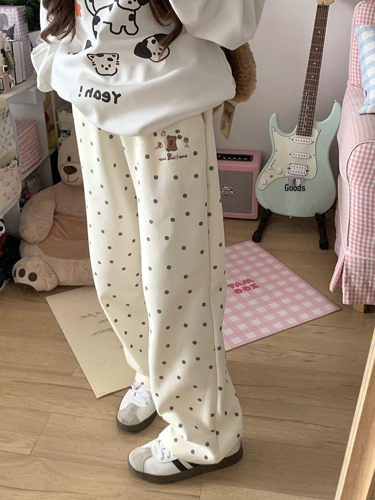 Уютные женские брюки широкого кроя с принтом плюшевого мишки - Осень/Зима 2024, с плюшем, свободная и удобная посадка L