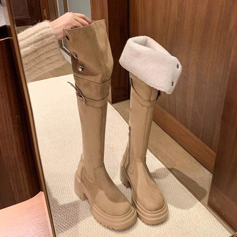 У Су Иньинь есть такие же осенне-зимние теплые сапоги из овечьей шерсти на толстой подошве с толстым каблуком и эластичные тонкие сапоги выше колена для женщин. 35