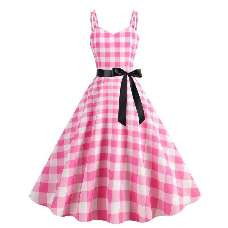 Фабричная поставка 2023 Горячая распродажа Модное летнее сексуальное платье-слинг в стиле ретро, прилегающее, стройнящее, в клетку, с широкой юбкой JY15755 S