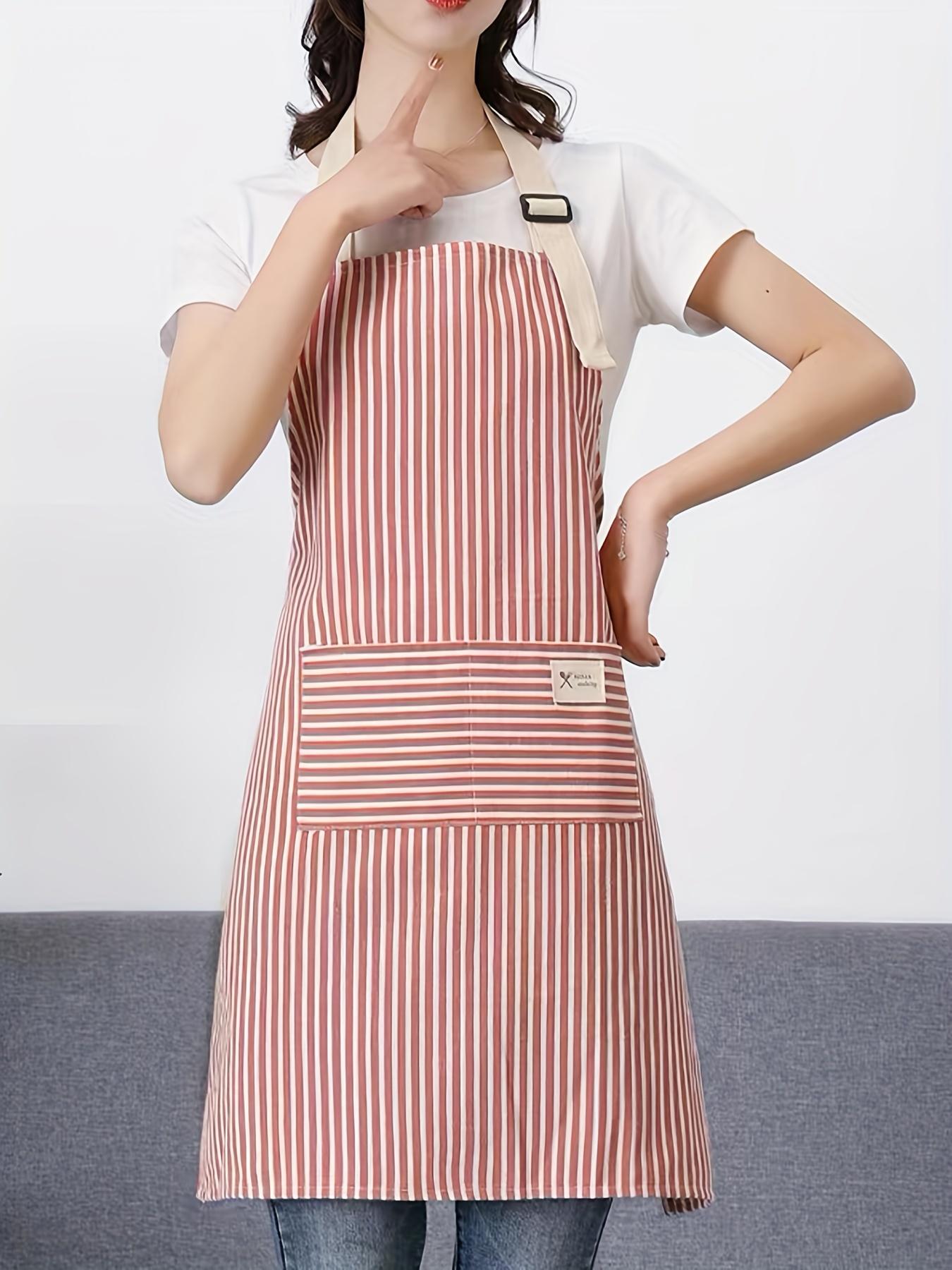Фартук с бретелькой на шее и полосатым принтом, повседневный кухонный фартук с завязками на спине и карманом, женская одежда