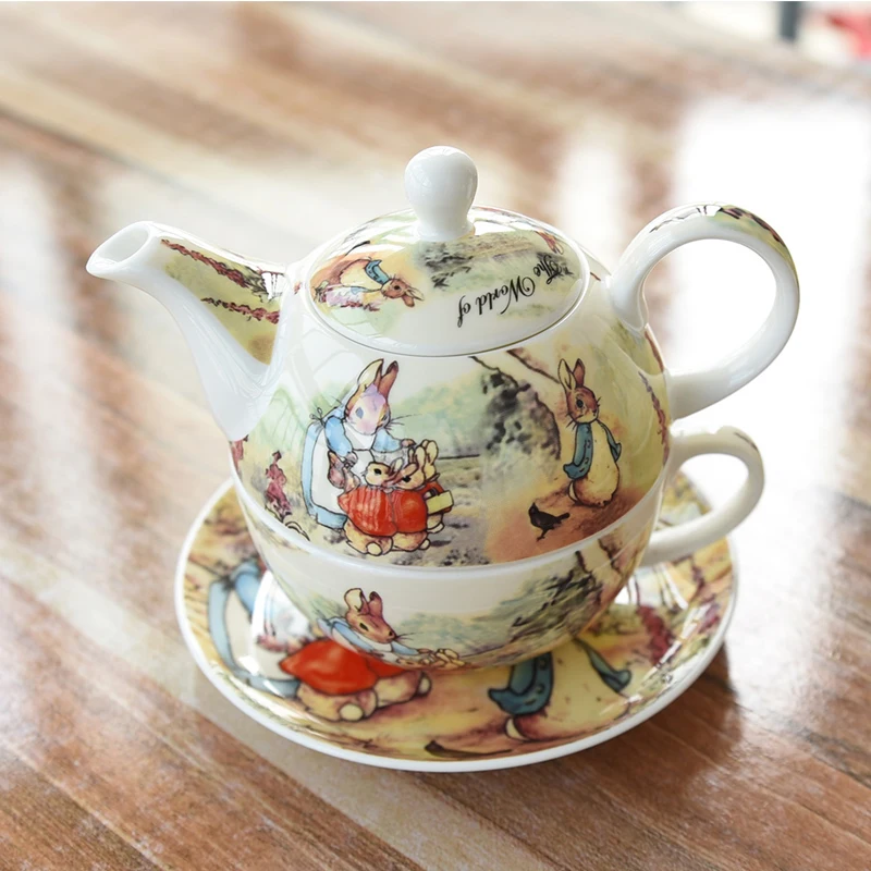 Фарфоровая кофейная чашка, блюдца, набор керамических чашек для послеобеденного чая, чайник с мультяшным Кроликом, посуда для кофе, посуда д...