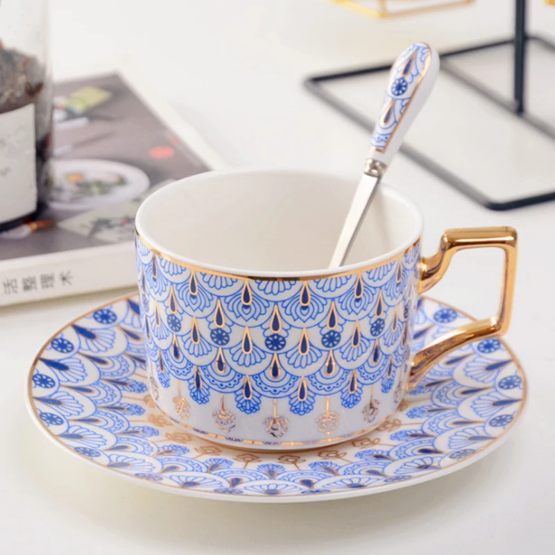 Фарфоровая кофейная чашка и блюдце высшего качества, набор для кофе из костяного фарфора, мозаичный дизайн, контур в золотой чайной чашке и ...