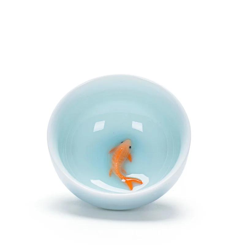 Фарфоровая чайная чашка в форме рыбы из селадоновой глины, маленькие чайные чашки в форме карпа, чайная утварь в стиле кунг-фу, персонализированные керамические приборы для дегустации чая улун