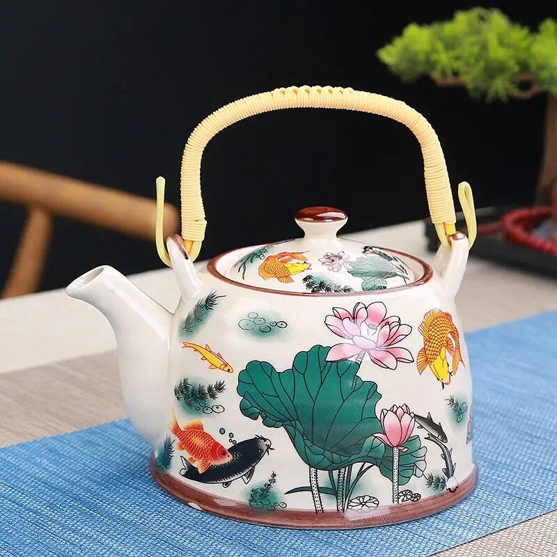 Фарфоровый чайник с сеткой-ситечком большой емкости 900 мл традиционный ретро керамический чайный сервиз чайный горшок подарок кунг-фу 21
