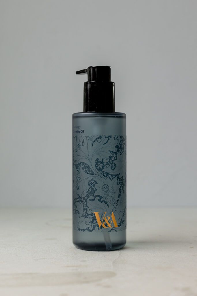 Средства бренды продуманы до мельчайших деталей, поэтому в оформлении гидрофильного масла используется принт, напоминающий римские глифы, который повторяет работу Уильяма Морриса, которую можно найти в британском музее.