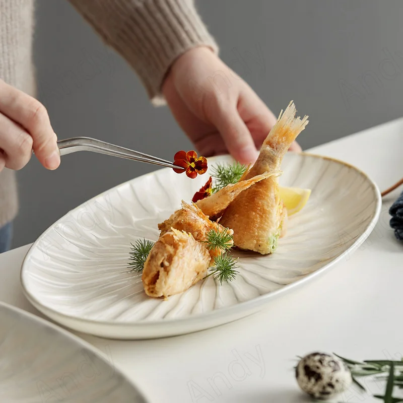 Современная керамическая тарелка, креативные полосатые рельефные тарелки для рыбы, Современная гостиная, ресторан, настольный лоток для фр...