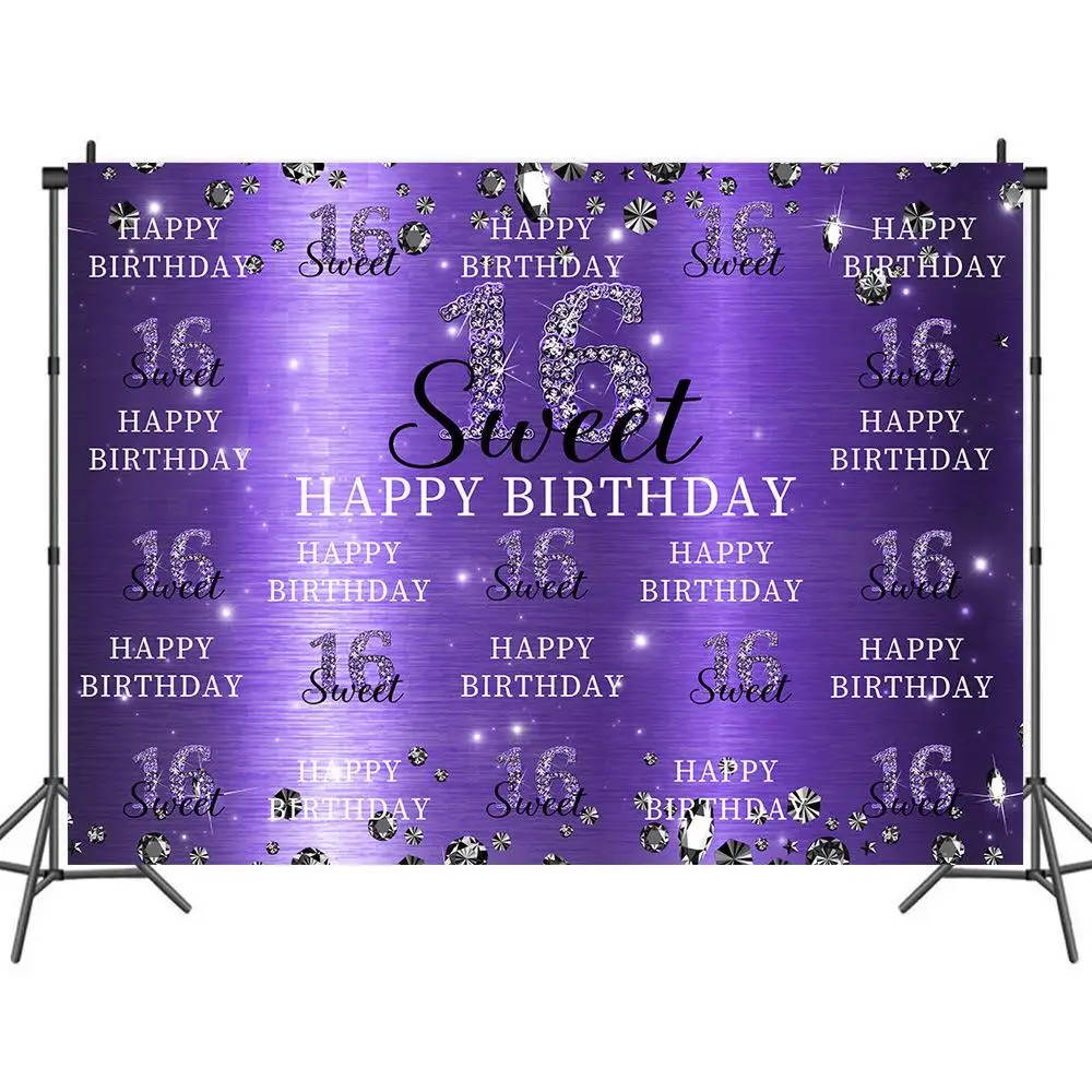 Фиолетовые розовые фоны для фотосъемки в честь Дня Рождения 16-летней милой девочки фоновые Декорации для вечеринки портрета реквизит для ф...
