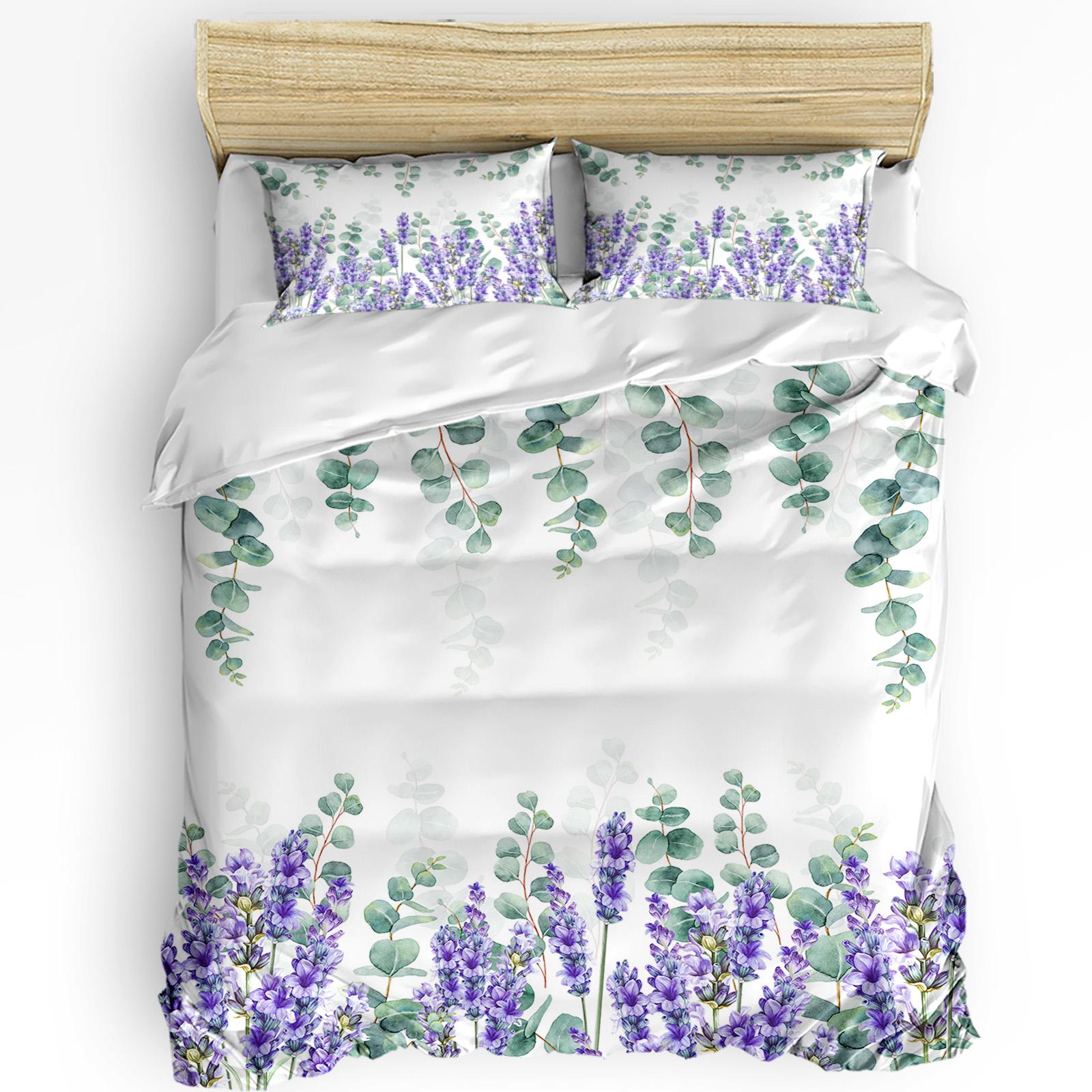Фиолетовый цветок лаванды белый пододеяльник с наволочкой индивидуальный комплект постельного белья из 3 предметов пододеяльник двуспальная кровать домашний текстиль EU single(135x200cm)