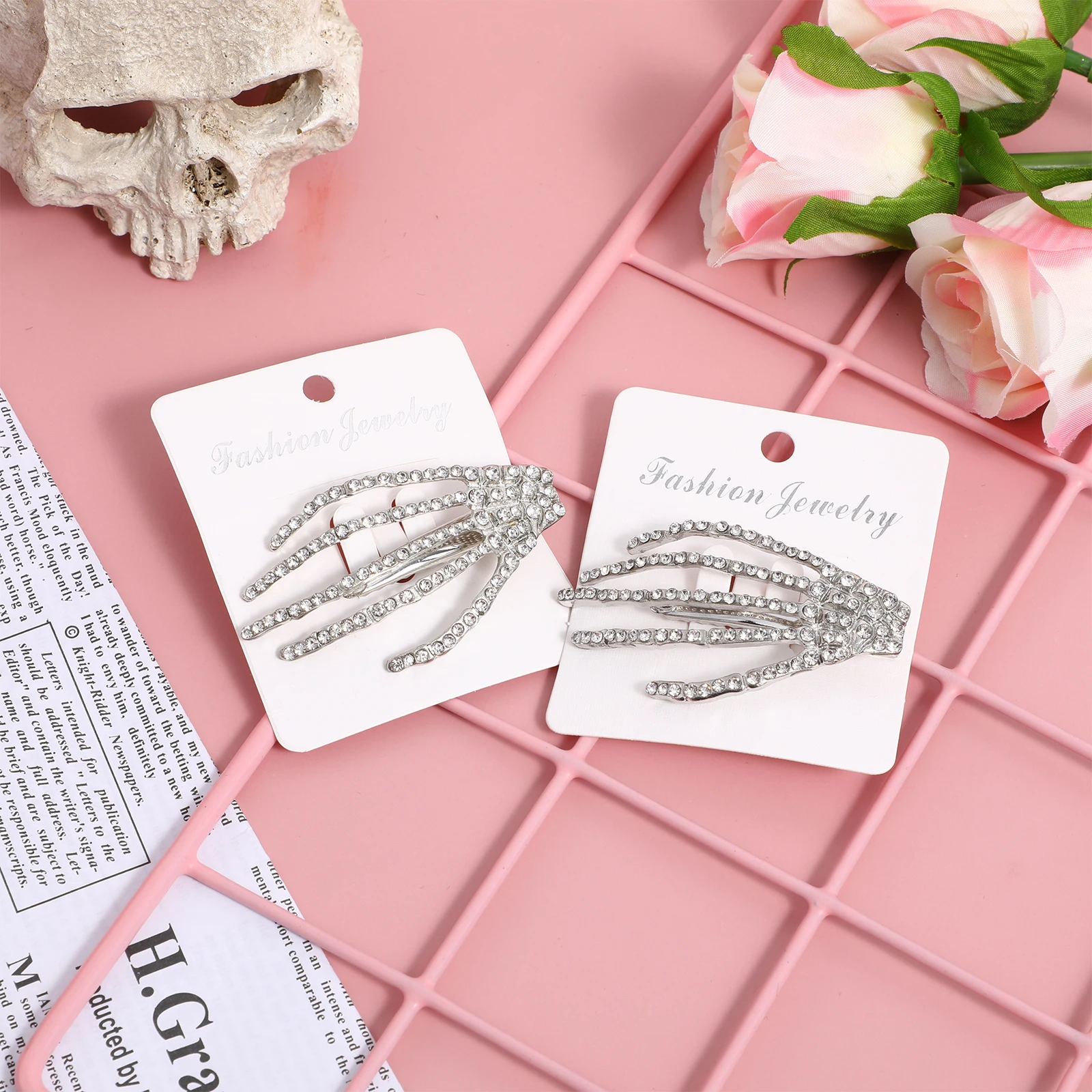 2Pcs Claw Hairpins Rhinestone Decorated Gothic Style Halloween Costume Accessories Women skull hair clips