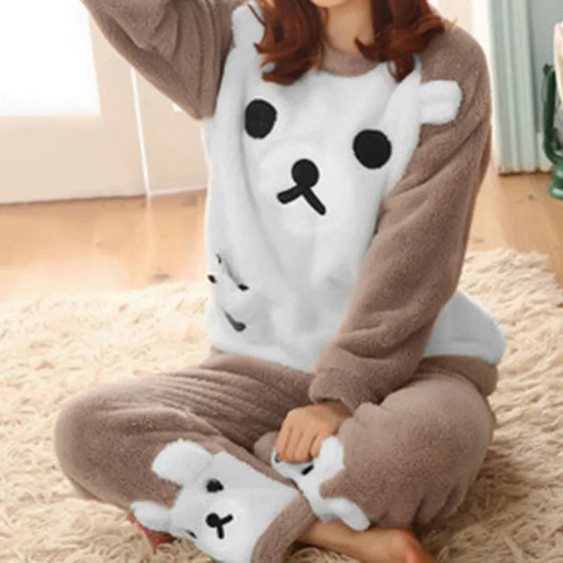 Фланелевая Корейская бархатная Женская пижама, пижама, одежда для сна, милый комплект, домашняя одежда, зимняя теплая Пижама с круглым вырез...