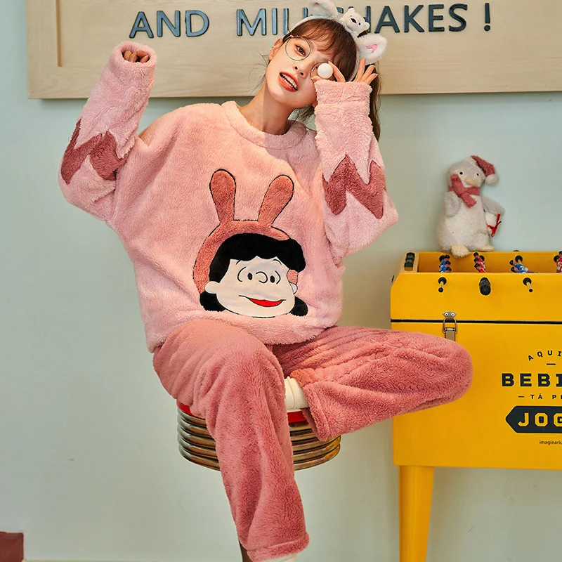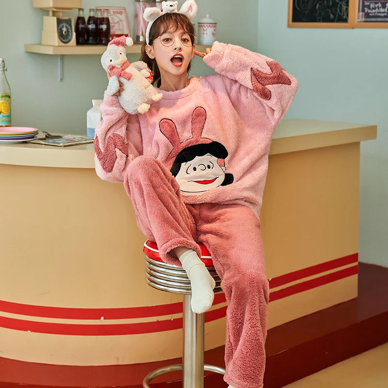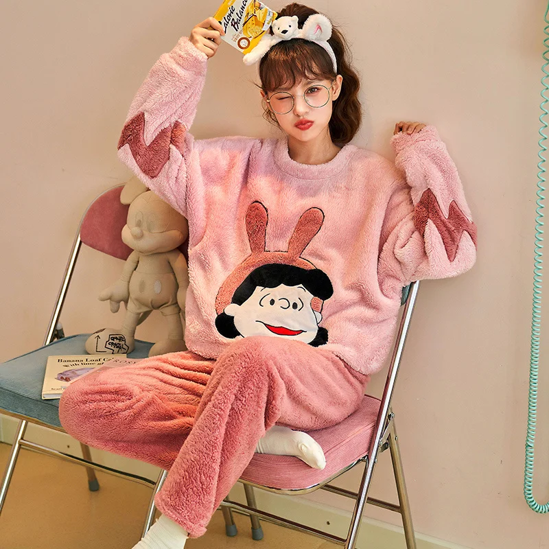 Фланелевая Пижама женская верхняя одежда осень-зима женская одежда большого размера свободная и милая домашняя Повседневная флисовая одеж...