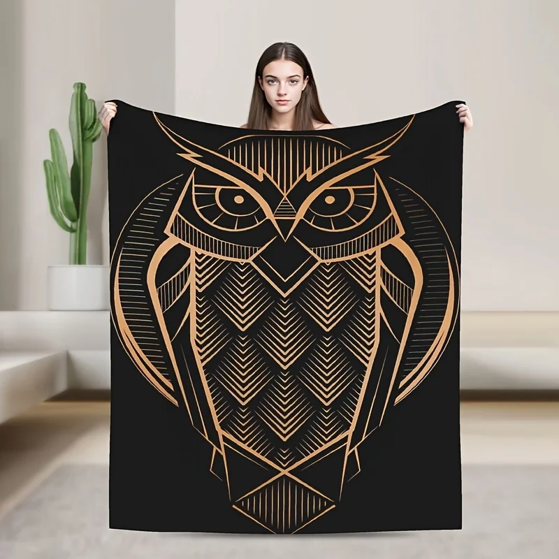 Фланелевое одеяло с цифровым принтом и головой золотого кота на черном фоне, одеяло-шаль, подходит для спальни, автомобиля, лучший подарок