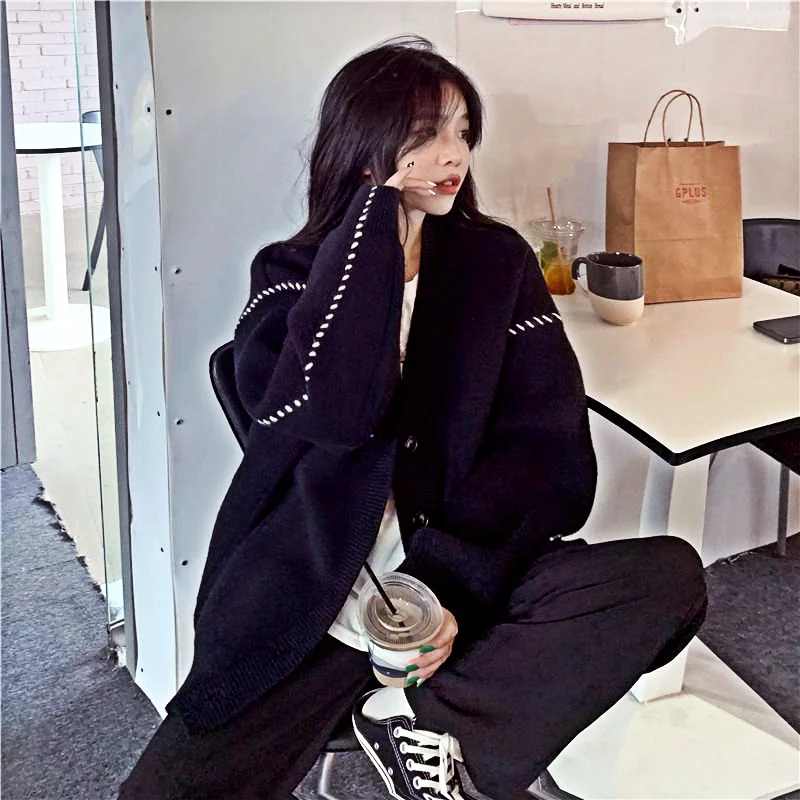 2022 Lazy Autumn and Winter Soft Waxy Sweet College Sweater Cardigan Female Student Korean Version Looser Woman Coat