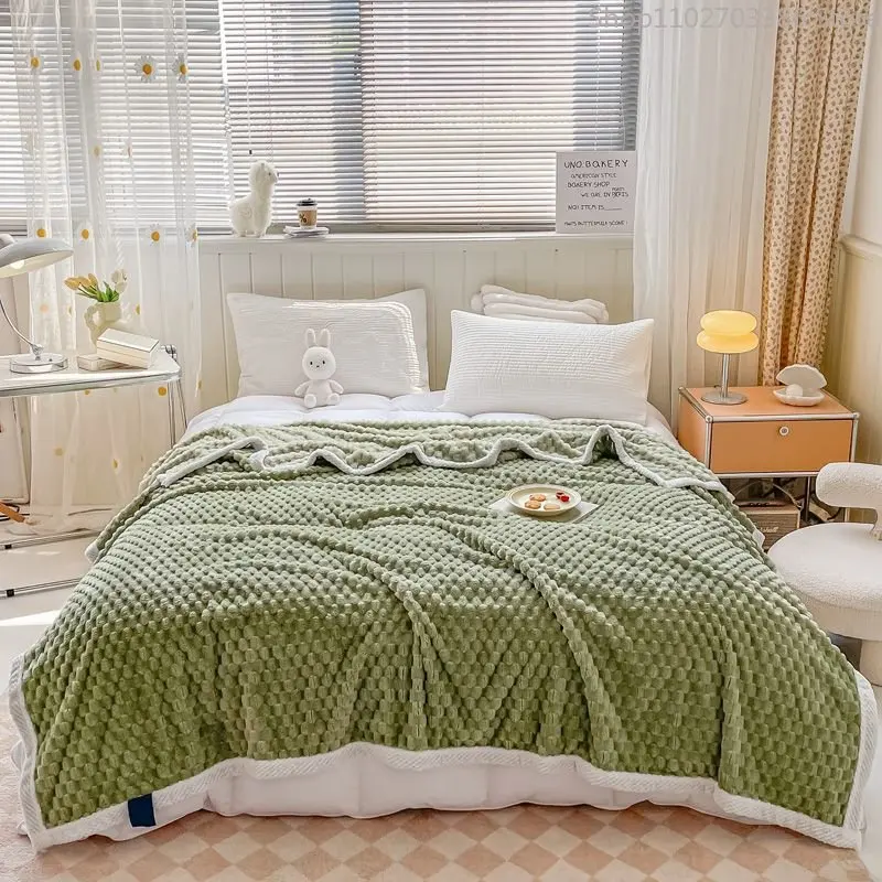 Фланелевые одеяла для кровати, мягкое теплое одеяло из кораллового флиса, серое, желтое, зеленое однослойное покрывало, домашнее постельное белье