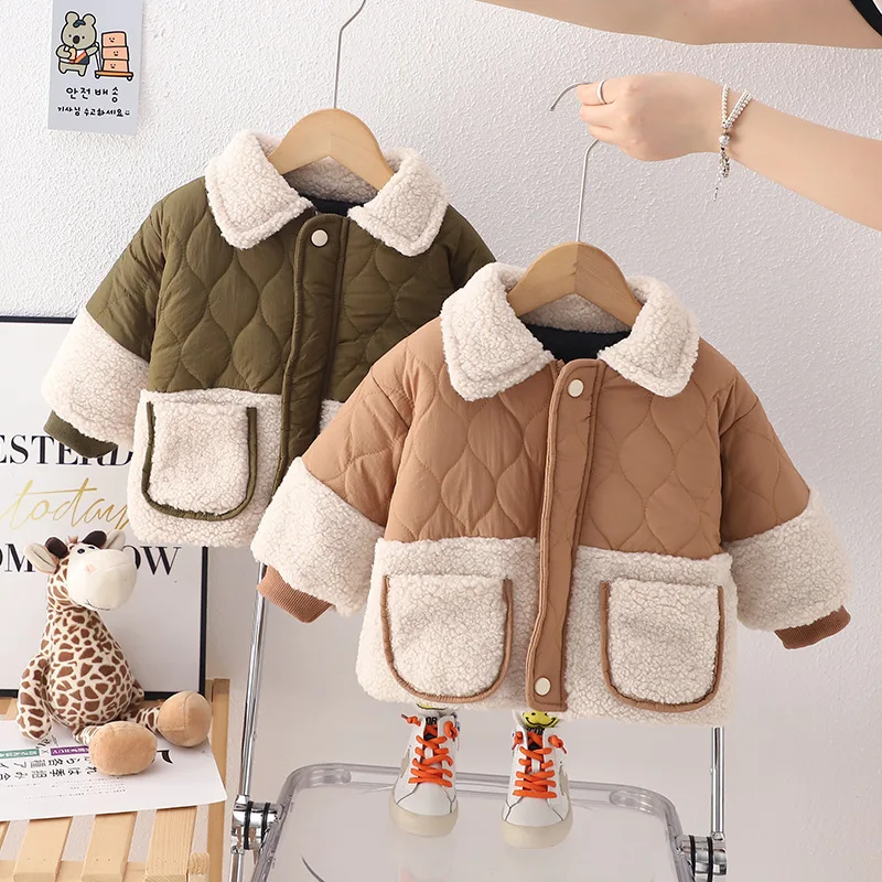 Флисовая Куртка для маленьких мальчиков и девочек, теплая кашемировая куртка с отложным воротником в Корейском стиле, Детская верхняя одежда, подарок на день рождения, 2023