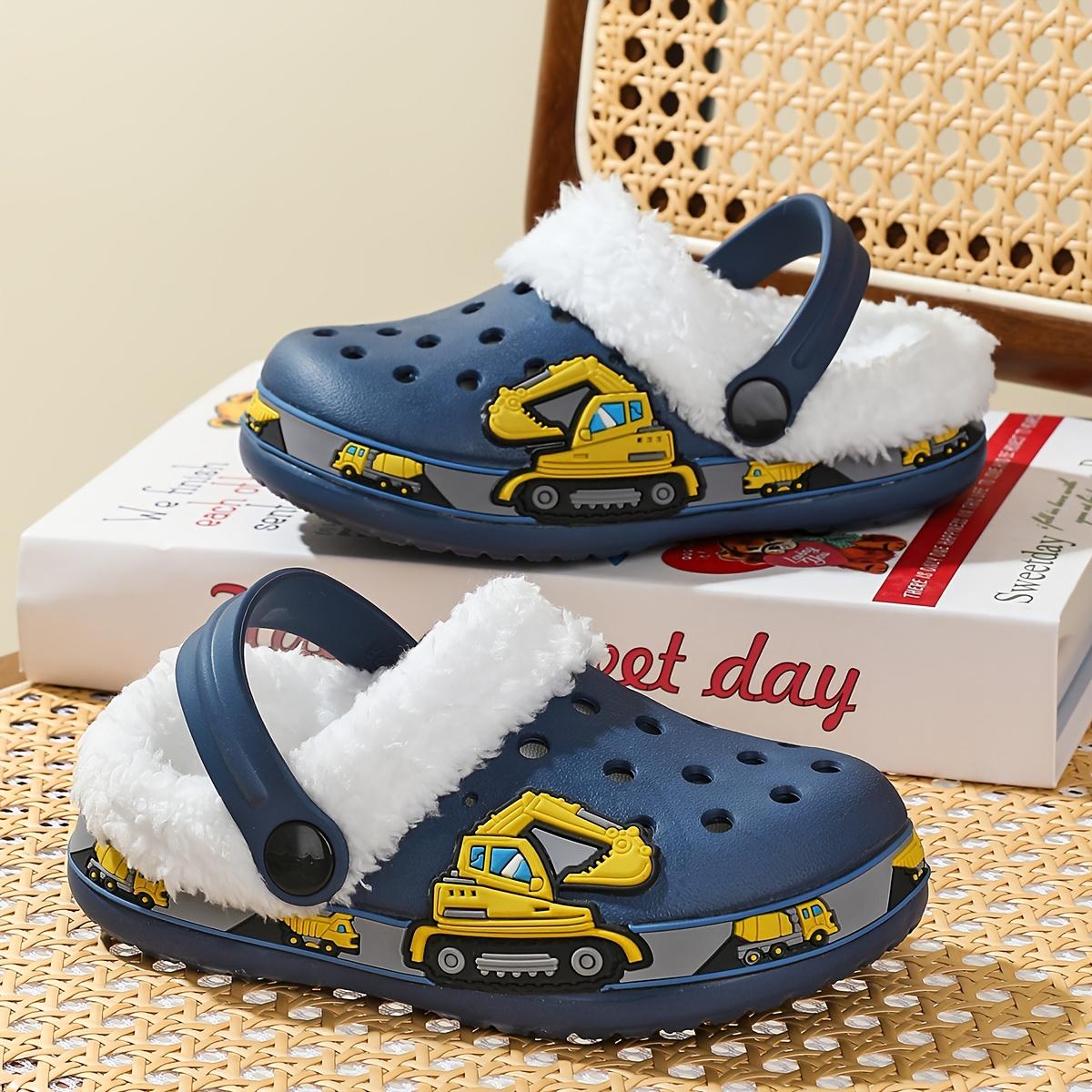 Флисовые EVA клоги с мультяшным дизайном строительной техники - Теплая зимняя обувь-шлепанцы для осени и зимы, обувь для холодной погоды 27 морской синий