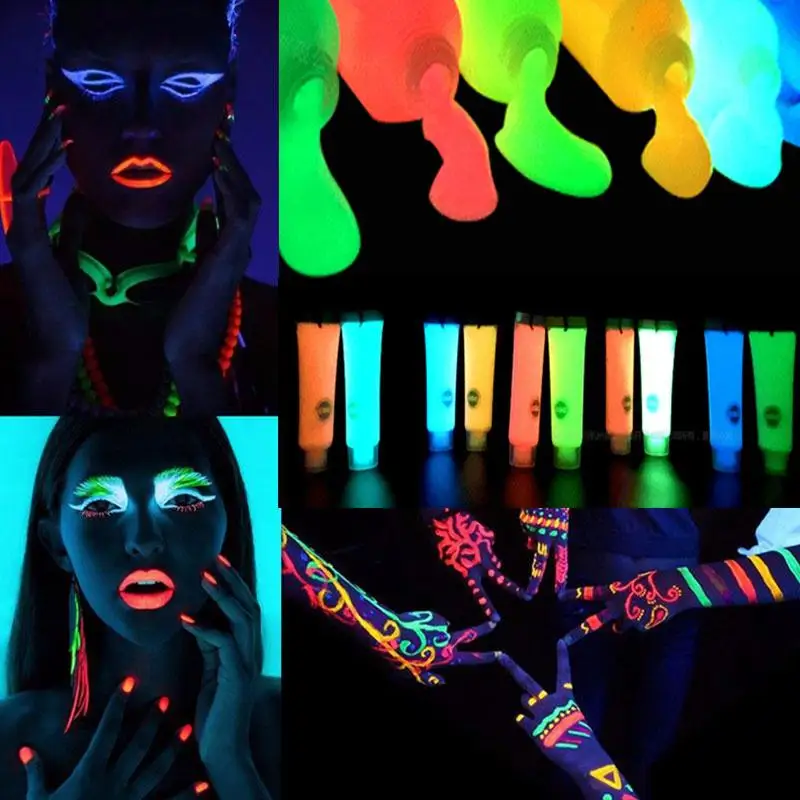 Флуоресцентные краски для бара, ночного клуба, вечерние, ручная роспись, светящаяся в темноте краска для тела на день рождения, краска для те...